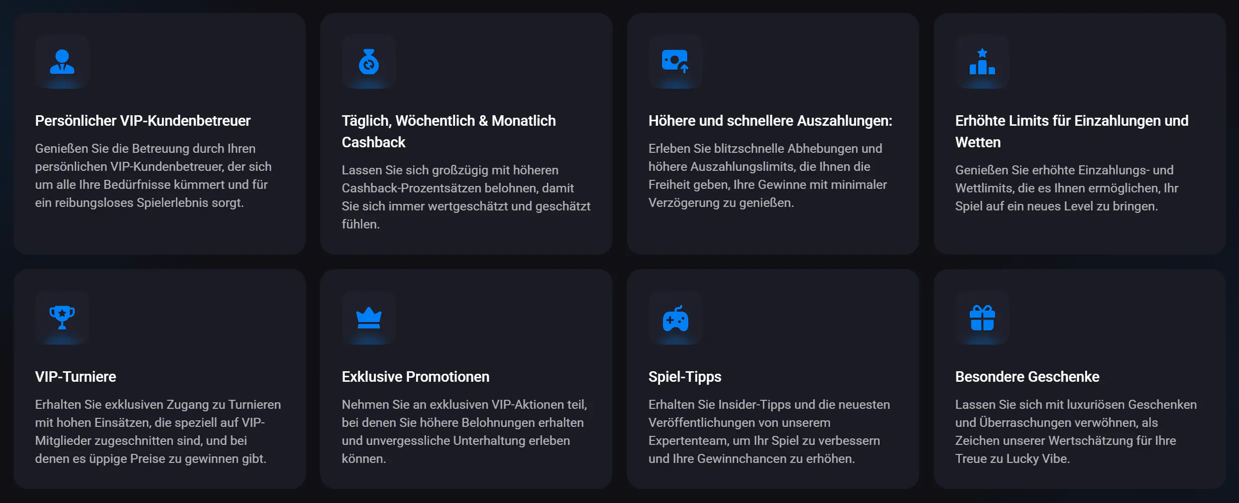 Hinweis: Alle Boni unterliegen 40x Umsatzbedingungen, aber keine Sorge, die Lucky Vibe Mobile App zeigt Ihren aktuellen Umsatzfortschritt in Echtzeit an. So behalten Sie stets den Überblick, ohne Excel-Tabellen zu bemühen.
