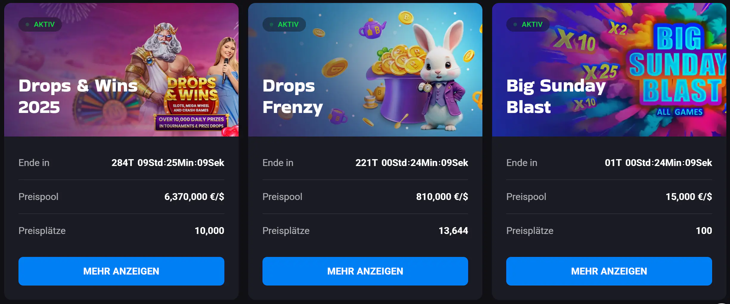 Der Clou: Die Top-Plätze werden mit Cashback-Casino-Gutschriften, Treuebonus-Paketen oder sogar physischen Preisen belohnt. Einfach mitmachen, umso härter spielen, und abwarten, ob die Glückssträhne reicht.